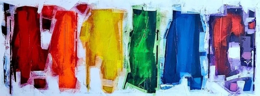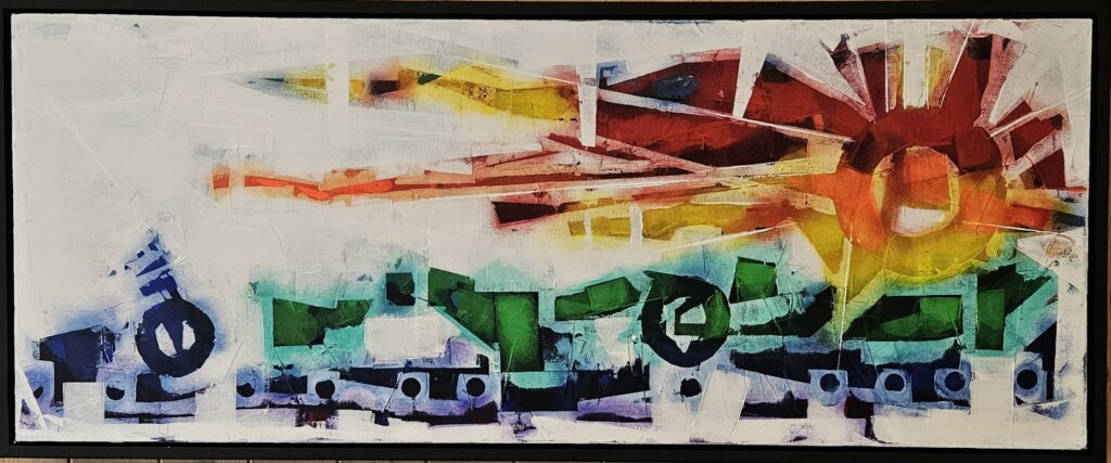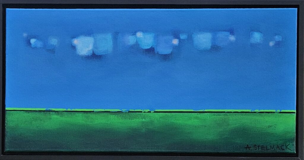 Andrew was born and raised in Winnipeg, Manitoba and moved to Toronto in 1991 to begin and fulfill his artistic journey as a well-known stage actor. After twenty-five years of acting and singing on all of Canada’s biggest stages, he decided it was time to try another challenge for the second half of his life and embarked on a visual arts career. He is now an accomplished visual artist, well known for his big, bold, and colourful abstracts as well as his soothing blue landscape Marshmallow Skies series. He maintains a fall/winter/spring studio in Toronto and a summer studio on Lake Winnipeg in Manitoba. His artwork is found in galleries across Canada and can be found in both private and corporate collections in Canada, the USA, Asia, Europe, and Australia. His art has also been given to various Ministers in Canada’s Parliament.