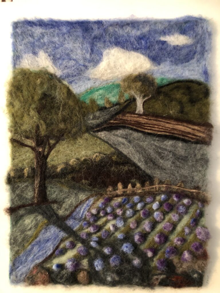This year I have been exploring felting, using pure wool and adding embellishments such as embroidery to create unique pictures that tell a story. I enjoy sharing my art with others and display my work at Gwen Fox Gallery in Selkirk as well as a few other locations. I am always willing to help other artists develop their skills when asked.