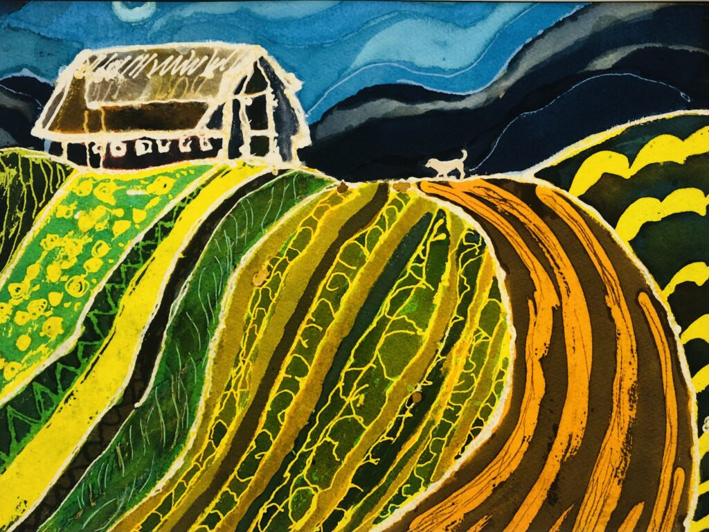 a visual artist, storyteller, and musician moved to a farm in eastern Manitoba in 2011. Her family keeps bees while she paints in her studio overlooking the Whitemouth River. She has taught art to senior’s groups in the Eastman region and in Winnipeg. She worked with the Manitoba Arts Council as a visiting artist in schools across Manitoba. Her week-long residencies paired storytelling with art making for students of all ages. Mary currently serves on the board of the Boreal Shores Art Tour.