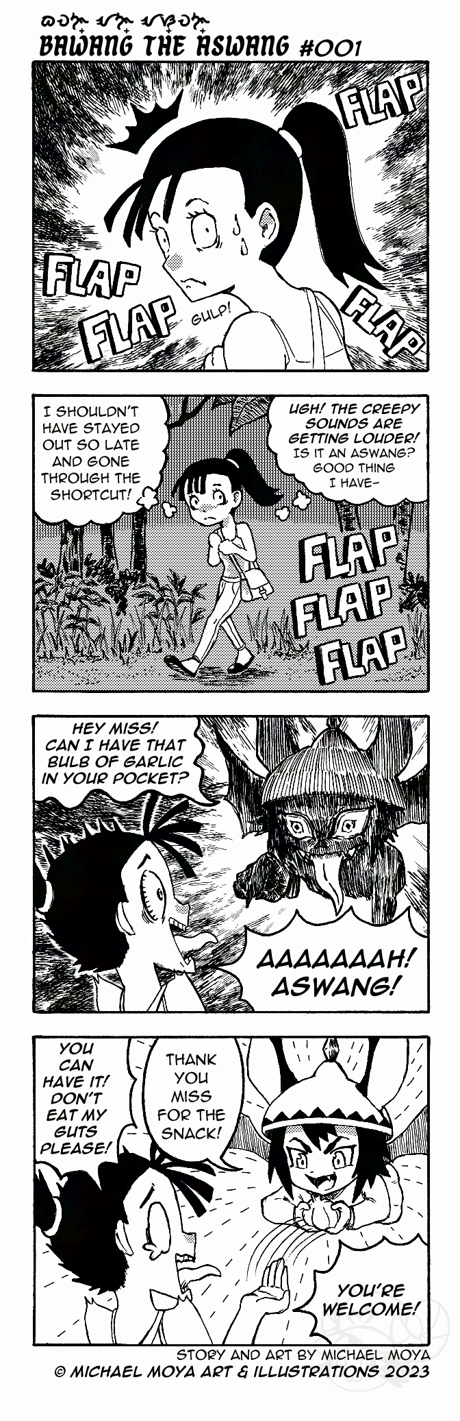 Besides creating fine art and illustrations. Michael is also an aspiring comic author and artist, who is working on several personal comic projects. He is currently publishing a comic strip series in the Filipino newspaper back in Alberta called “”Bawang the Aswang””.